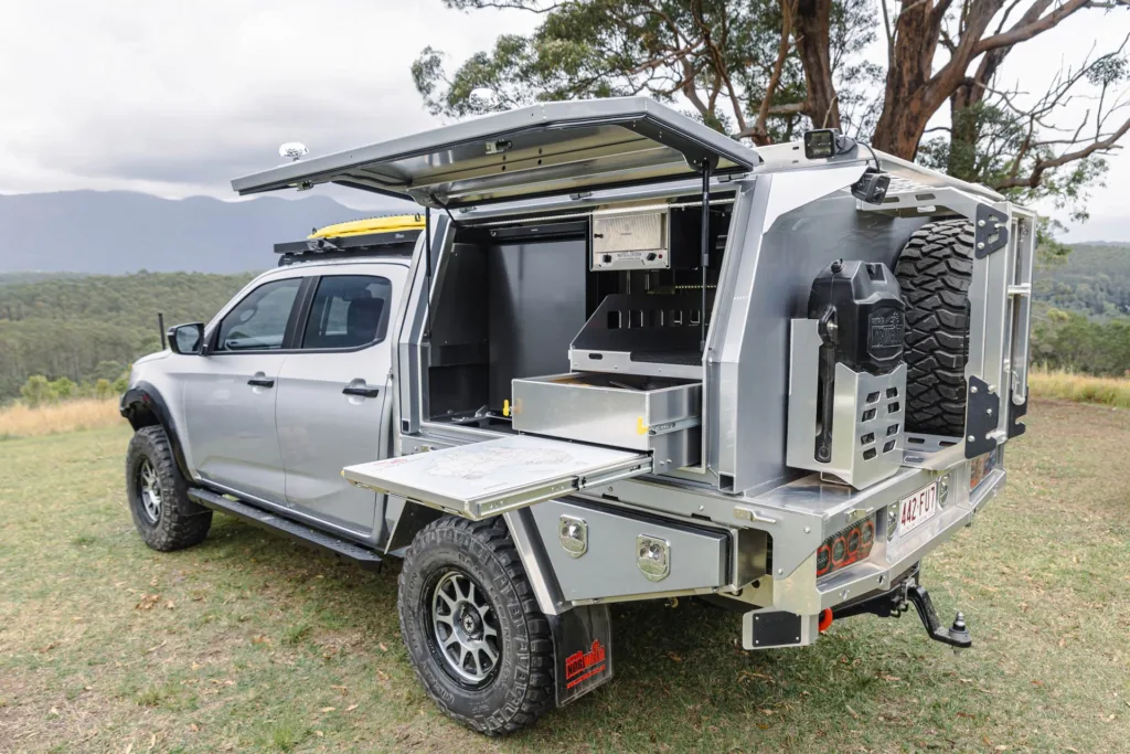 Store tools, spare parts, recovery gear or use it as a workbench. Dust and water resistant, this rear trundle drawer with drop in table, and updated lock functionality can withstand up to 200kg of load.