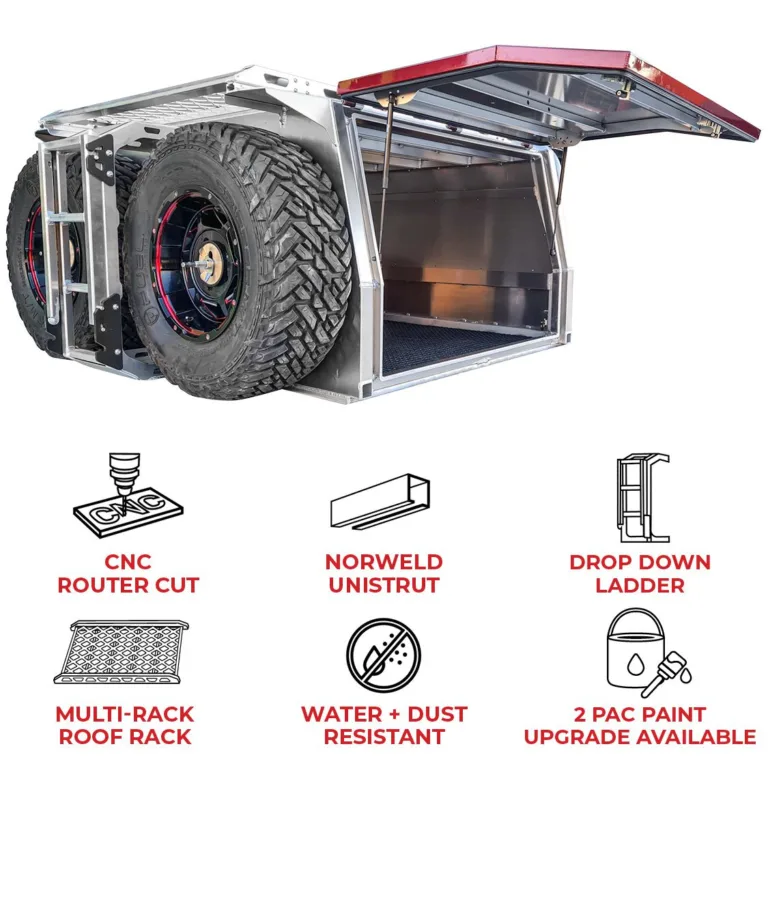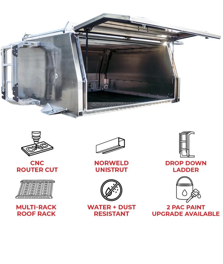 With heaps of optional accessories available, you can set up your Norweld to suit your needs. Including a fridge, pantry and camp oven to your set up creates the ultimate kitchen when traveling off-grid. Our Tradie range of canopies can be configured with vice holders, shelving and drawer units and partitions to secure and segment tools and parts, building a functional mobile work station.