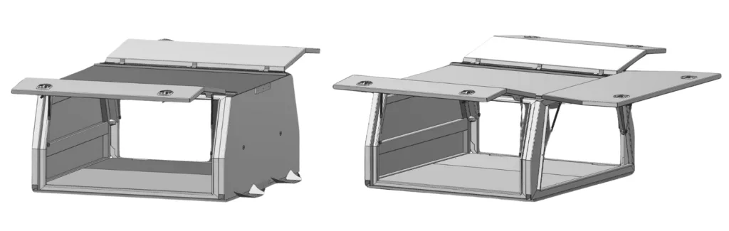 Building on the Tradie Basic canopy setups, the Tradie Cargo Canopy adds a fully welded, built-in small drawer and table storage on the passenger side. It’s compatible with all bolt-in accessories and features a concealed battery compartment to keep power systems secure and slimline.