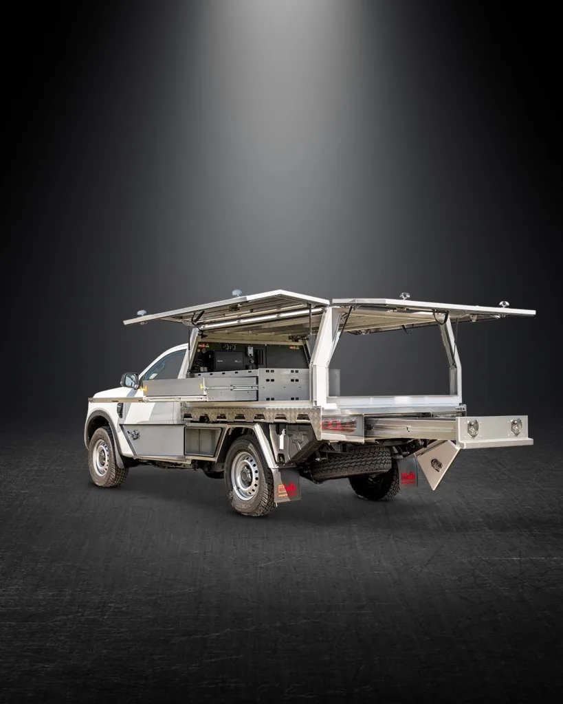 Our single cab aluminium ute canopies are designed for bold adventurers, dependable tradies and families seeking versatile solutions and are built to step up off-road experiences. Single Cab Ute Canopies