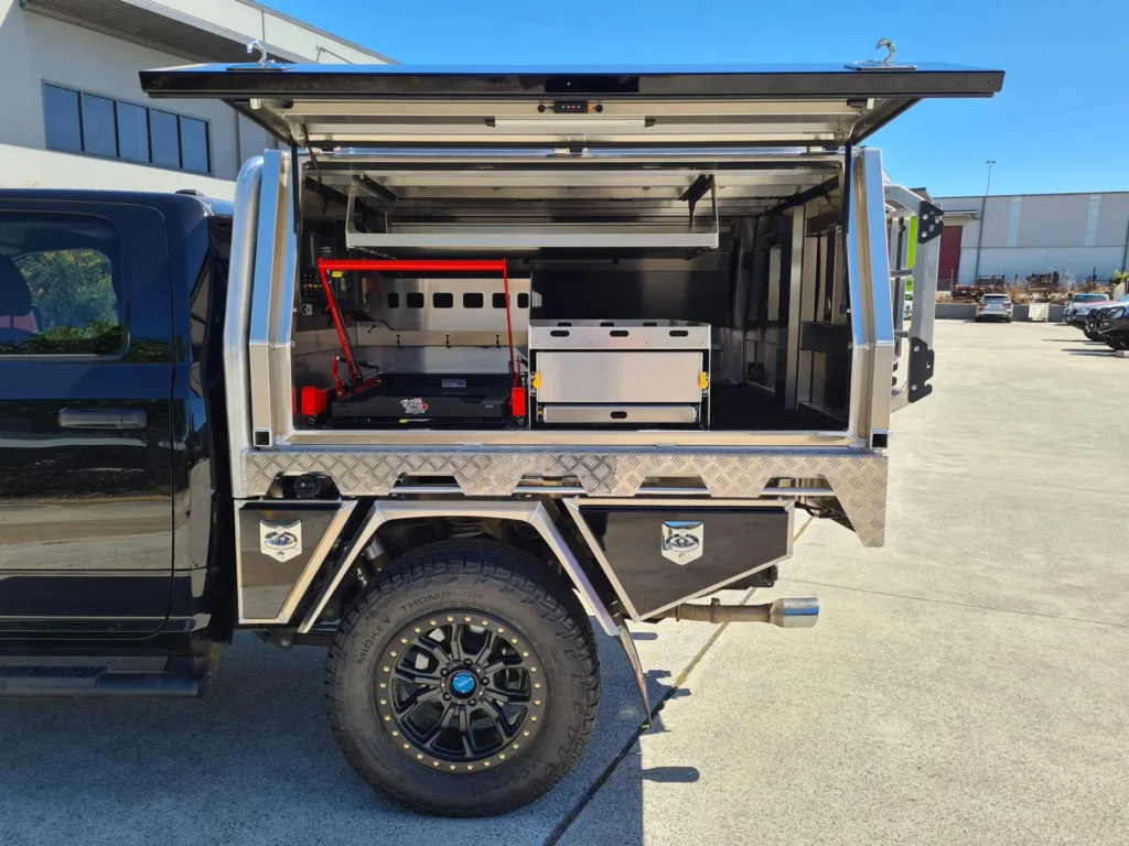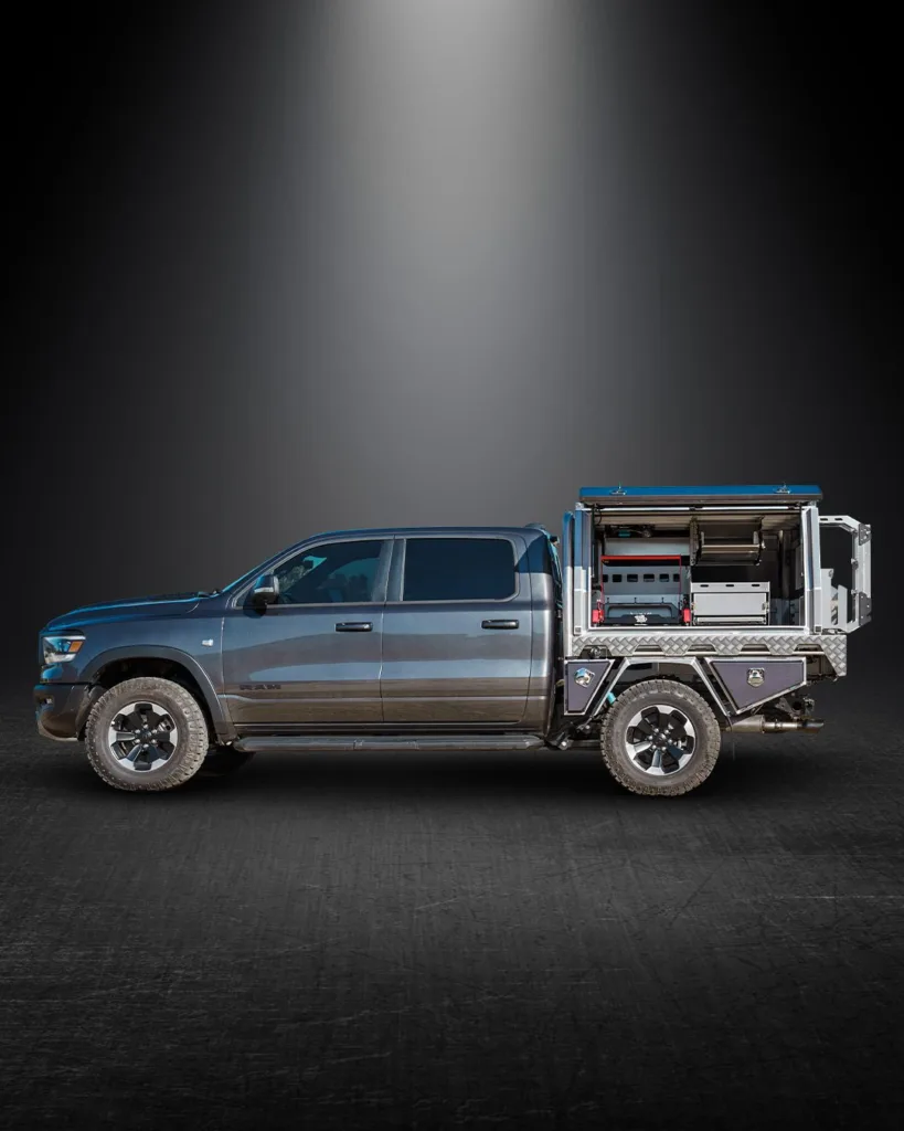 Norweld’s Ram 1500 ute canopies are engineered to provide a seamless fit and exceptional performance. However, it’s important to note that our canopies are designed to work harmoniously with the Norweld’s Ram 1500 Ute Trays. Their compatibility with other ute tray brands may vary due to differences in design, dimensions and mounting systems so we do not offer our canopies for third-party trays. Our Ram 1500 canopies are made strong to handle city and off-road journeys. We build them using top-notch materials, such as aluminium. Aluminium is picked for its great mix of strength and lightness. This choice makes the canopies tough and keeps your vehicle’s weight distribution in check. Norweld’s Ram 1500 ute canopies are designed to enhance your vehicle’s functionality and versatility significantly. These canopies provide secure storage for your gear, tools and equipment, protecting them from harsh Australian conditions while allowing easy access. Whether you’re embarking on outdoor adventures, overlanding or using your Ram 1500 for work purposes, our canopies offer ample space to organise and transport your belongings. While we understand the desire for customisation, our Ram 1500 canopies come with a set of standard features designed to provide optimal functionality and convenience. At this time, customisation of our floor plan for the Ram 1500 canopies is not available. We do have an internal strut system in the roof, which allows you to alter any accessories fixed to the roof. We have carefully curated the features we offer based on extensive research and user feedback to provide a comprehensive solution that meets various needs. Absolutely. Our Ram 1500 canopies are built to withstand various weather conditions and are well-suited for outdoor activities. They are designed to be dustproof and waterproof, protecting your gear from rain, wind and harsh offroad conditions. This makes them ideal for camping, overlanding, fishing and other outdoor adventures. The durable construction and our unique sealing design ensures your belongings remain safe and dry, allowing you to enjoy your adventures without a worry.TRAY FAQ’S