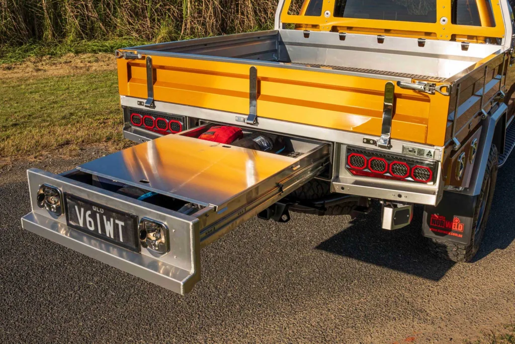 Store tools, shovels, spare parts or recovery gear in a 1200mm dust resistant trundle drawer. This drawer is tough and can with stand up to 200kg of weight.