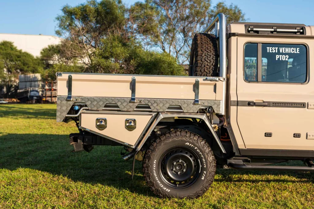 A 4mm high tensile single piece plate floor, means your tray is built tough. Ineos Grenadier Quartermaster Chassis Cab Ute Trays Feature