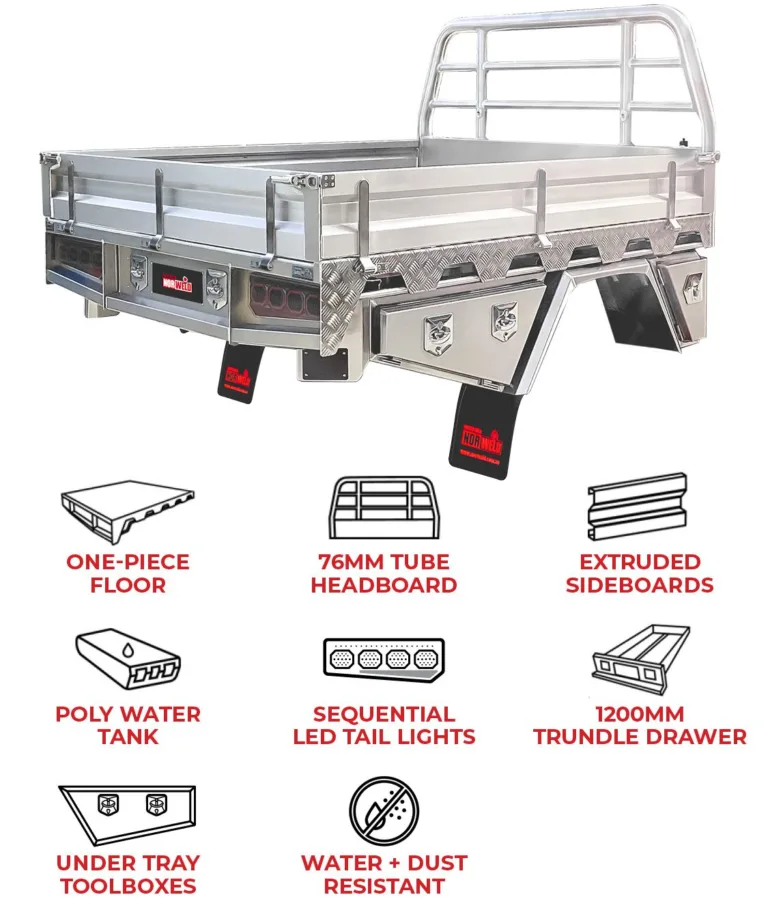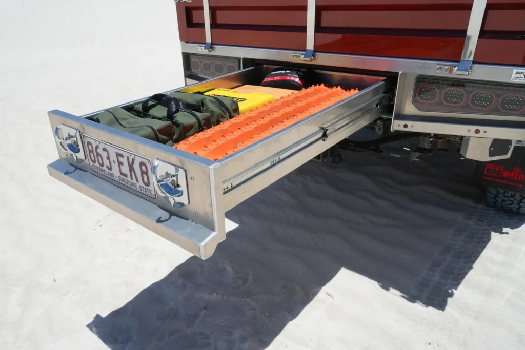 Store tools, shovels, spare parts or recovery gear in a 1200mm dust resistant trundle drawer. This drawer is tough and can with stand up to 200kg of weight.