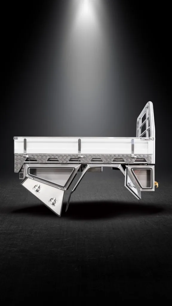 Custom-designed aluminium extruded sideboards with built in stiffeners.