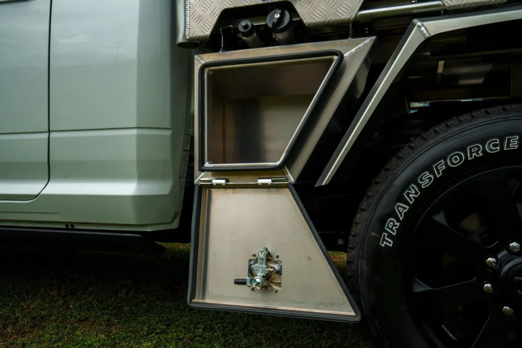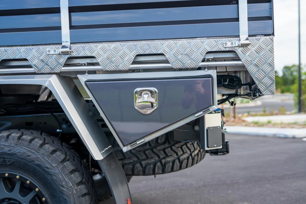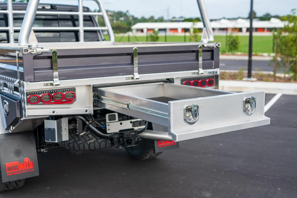 Store tools, shovels, spare parts or recovery gear in a 1200mm dust resistant trundle drawer. This drawer is tough and can with stand up to 200kg of weight.