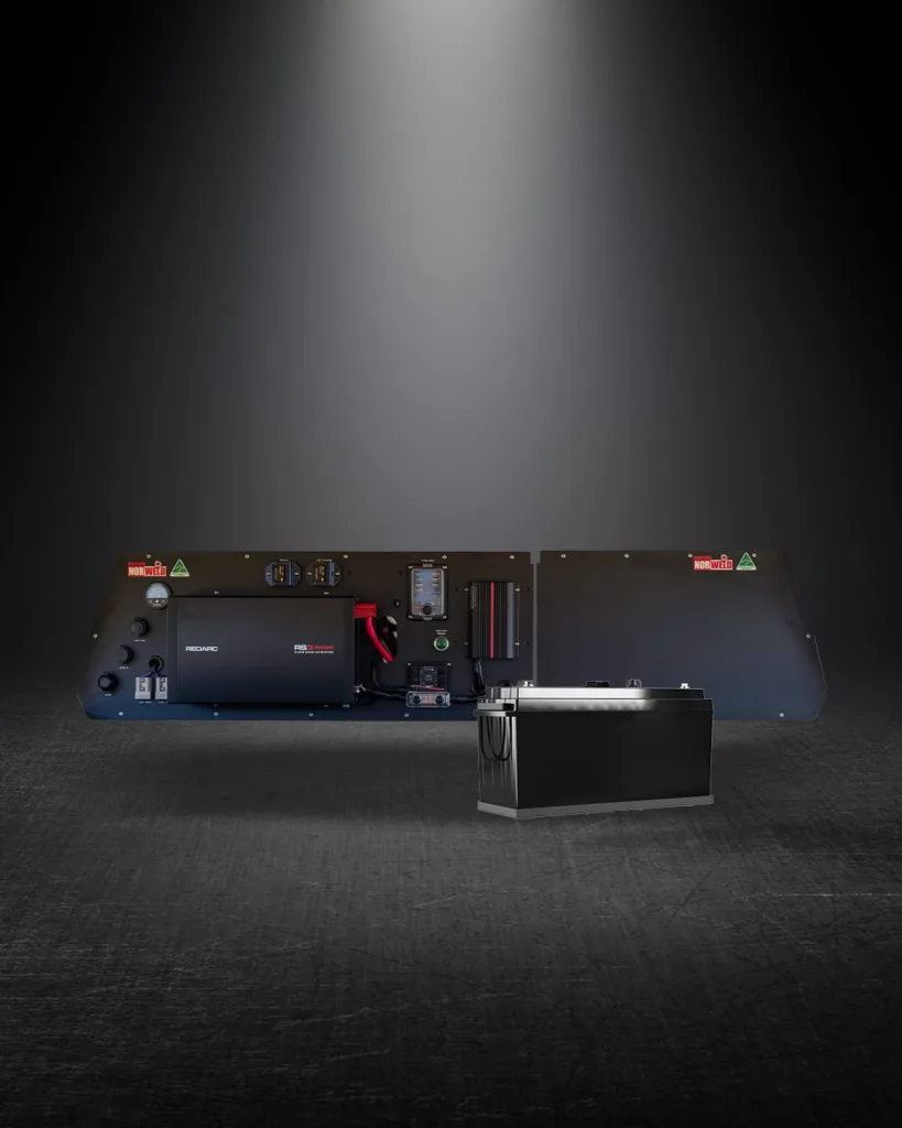 REDARC Onsite Series With a 2000W inverter this DESCRIPTION SPECIFICATIONS Management System N/A Lithium Battery 200Ah Battery Monitoring Enerdrive Epro Charging 50A BCDC Alpha Charger with Start Battery Charge Back option Inverter 2000W RS3 Pure Sine Wave 240V Input N/A Tri-colour dimmable door lights Aluminium Multi-Fit Battery Tray USB Ports 4 12V Sockets 1 Engel Sockets N/A 2 x Anderson Plugs Connected to Vehicle Cranking