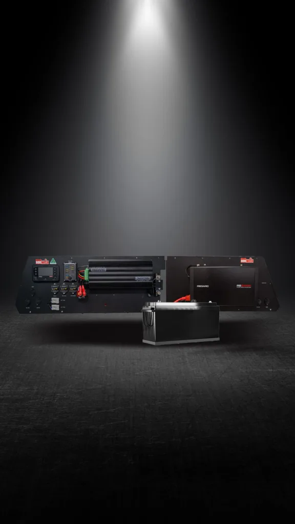 REDARC Ultimate With a 2000W inverter, increased battery capacity and the Manager 30 BMS this package can handle larger current drawing appliances such as a coffee machines, computers and induction cooktops, as well as your 12 volt fridge, lights and charging your tools. this pac DESCRIPTION SPECIFICATIONS Lithium Battery 200Ah B-TEC Battery Monitoring Redarc Redvision Charging 30BMS AC-to-DC Inverter 2000W RS3 Pure Sine Wave 240V Input External for AC charging and inverter AC transfer Tri-colour dimmable door lights Aluminium Multi-Fit Battery Tray USB Ports 4 12V Sockets 2 Engel Sockets 1 2 x Anderson Plugs Connected to Vehicle Cranking